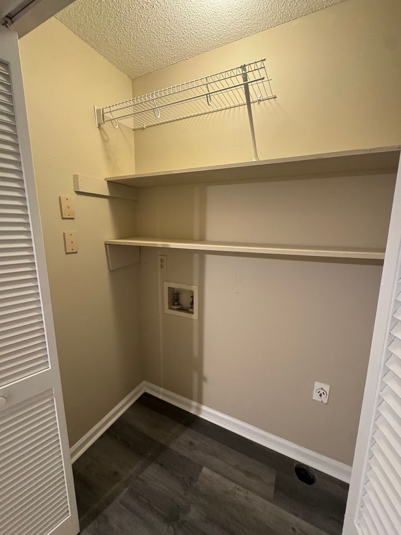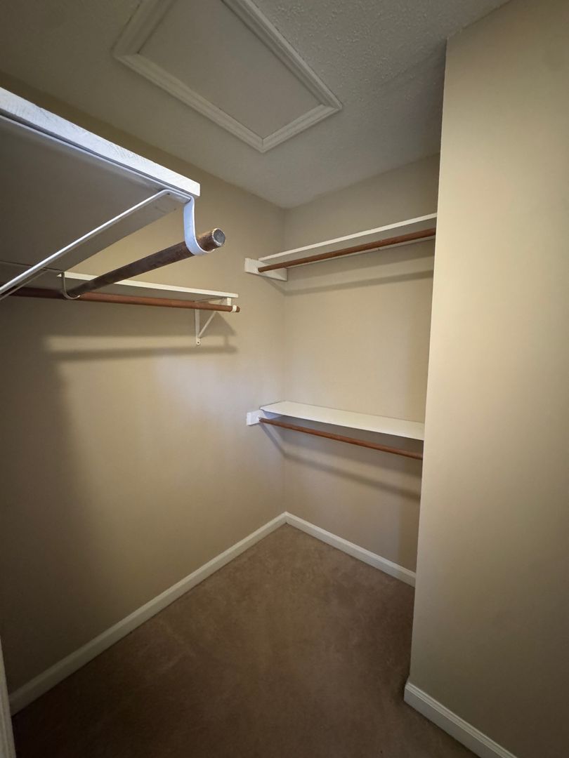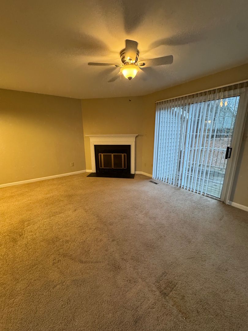Two story duplex with 2 bedrooms, 2.5 bathrooms (each bedroom has their own bathroom and downstairs has a half bathroom), living room/dining room combo with carpet, living room with wood burning fireplace, kitchen with stove, refrigerator and dishwasher, washer and dryer connections, carpet, central electric heat and air conditioning, deck and a outside storage shed. No Pets.