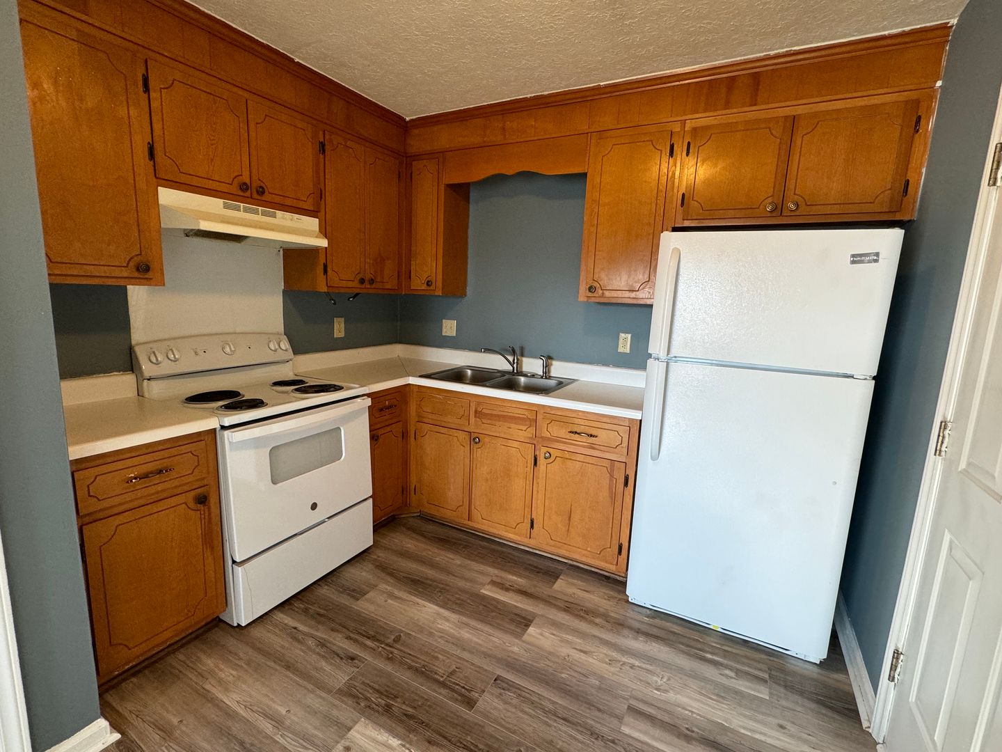 This two bedroom, one bath apartment has been freshly painted. Central (electric)heat and air. Living room, kitchen with stove and refrigerator. New luxury plank flooring throughout. There is not connections for a washer and dryer. No inside smoking. No Pets. Tenant will be required to have renter's insurance during tenancy at the property.